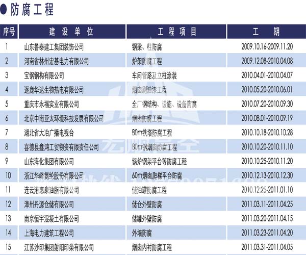 宏順建設(shè)工程有限公司是國家批準(zhǔn)成立的專業(yè)高空作業(yè)企業(yè):承攬過(國內(nèi).國外)煙囪新建、煙囪防腐、吊機防腐、水塔防腐、管道防腐、龍門吊防腐、儲存罐防腐、煙囪內(nèi)壁防腐等高空作業(yè)工程。具有“不搭腳手架 、 不需要停產(chǎn)”施工特點。